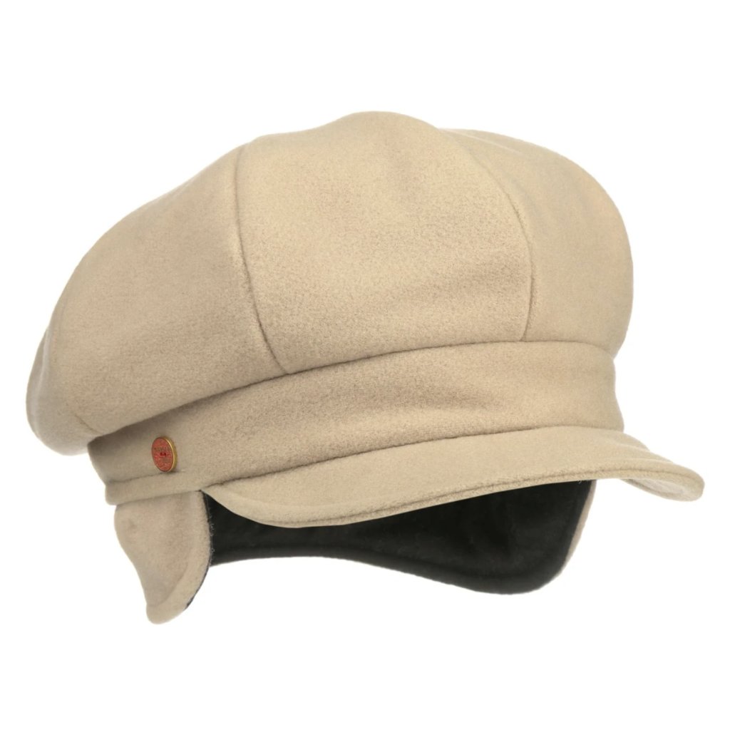8-dílna béžová dámská bekovka od Mayser - Camila Plus Newsboy Cap - ušní klapky