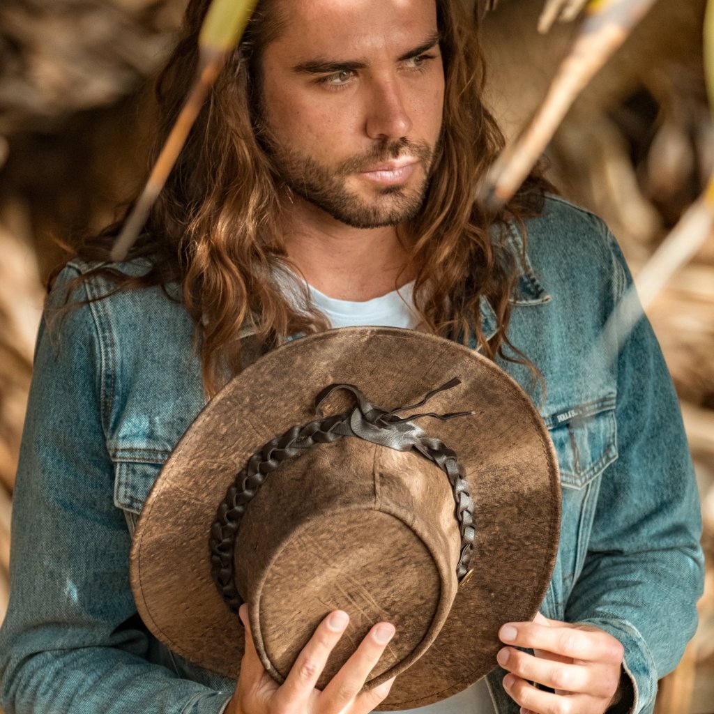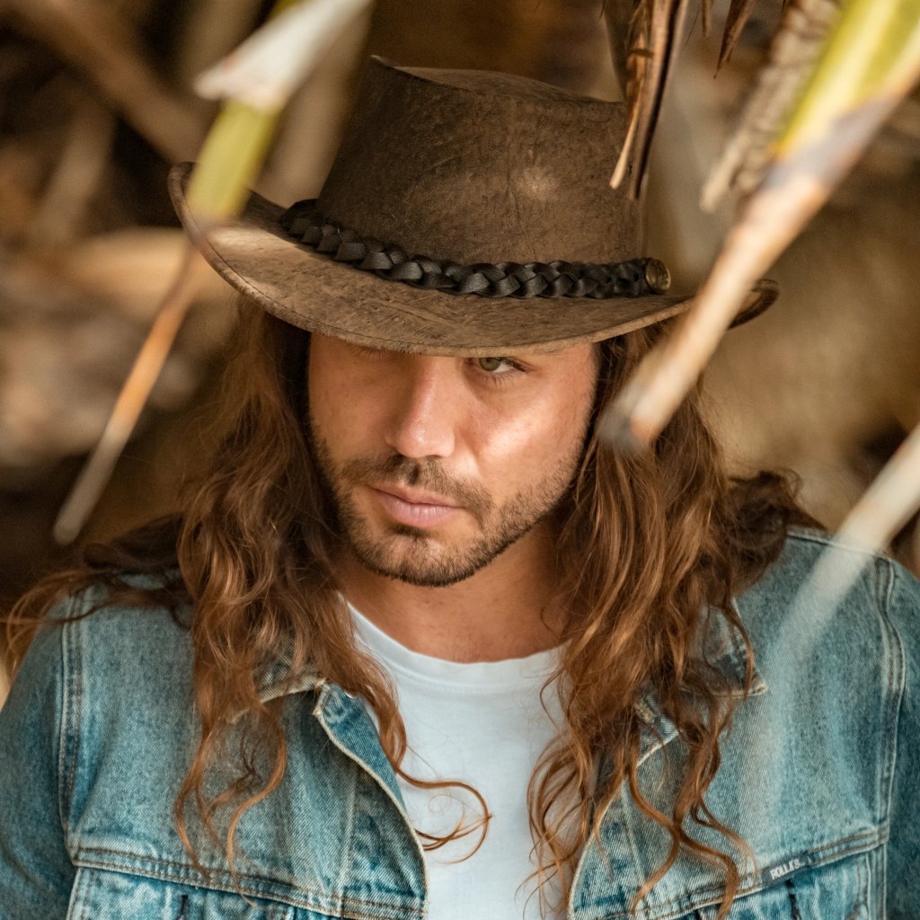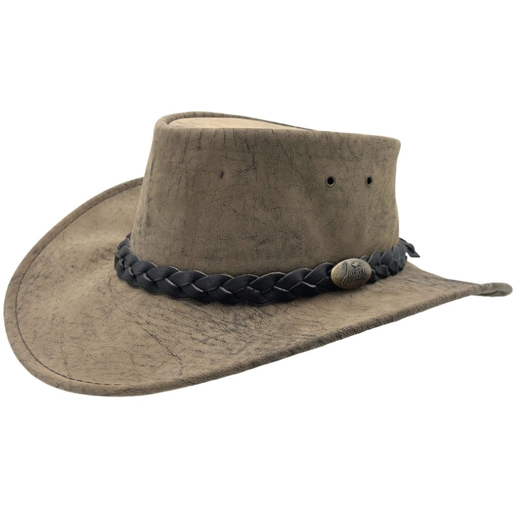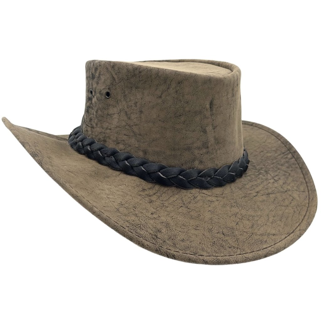 Australský hnědý klobouk kožený z klokaní kůže - Kangaroo Stonewash