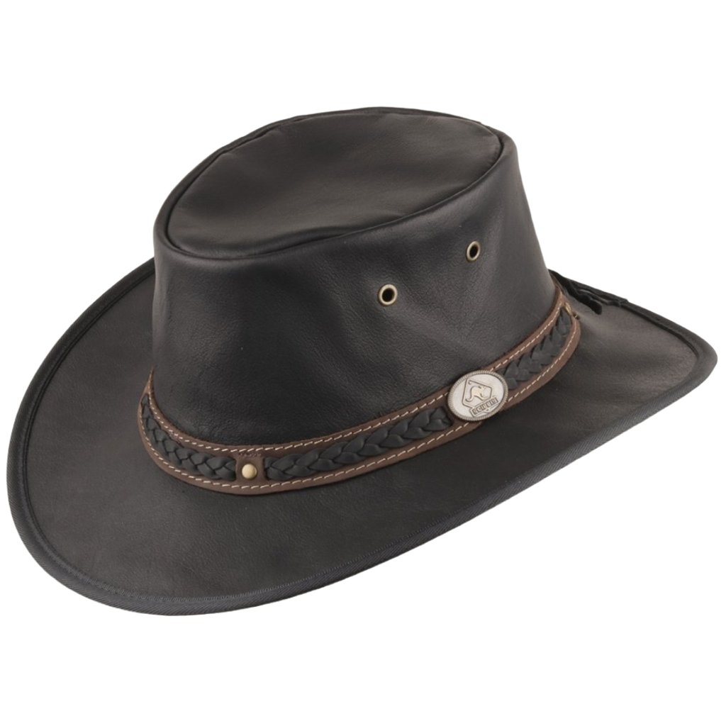 Kožený klobouk je čistá příroda a přírodní stopy, jako lehké škrábance, jizvy apod. jsou autentické díky drsné divočině pátého kontinentu, tvoří originalitu výrobku a jsou považovány za přirozenou vlastnost. Kamenná struktura kůže a výrazný dvoubarevný pásek na klobouku završují jedinečný vzhled této klasiky!