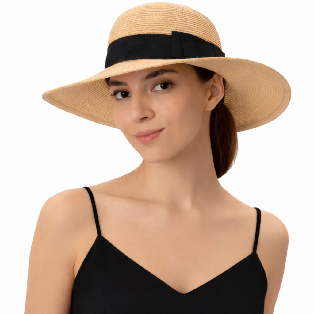Béžový dámský slaměný klobouk se širokou krempou