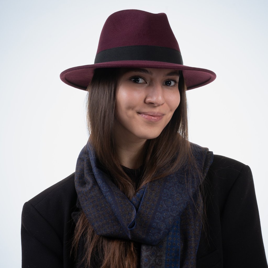 Bordó klobouk plstěný s kašmírem - klopená krempa