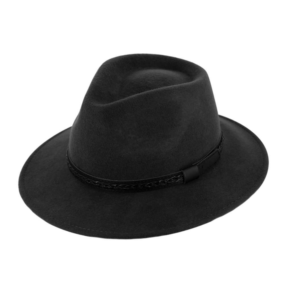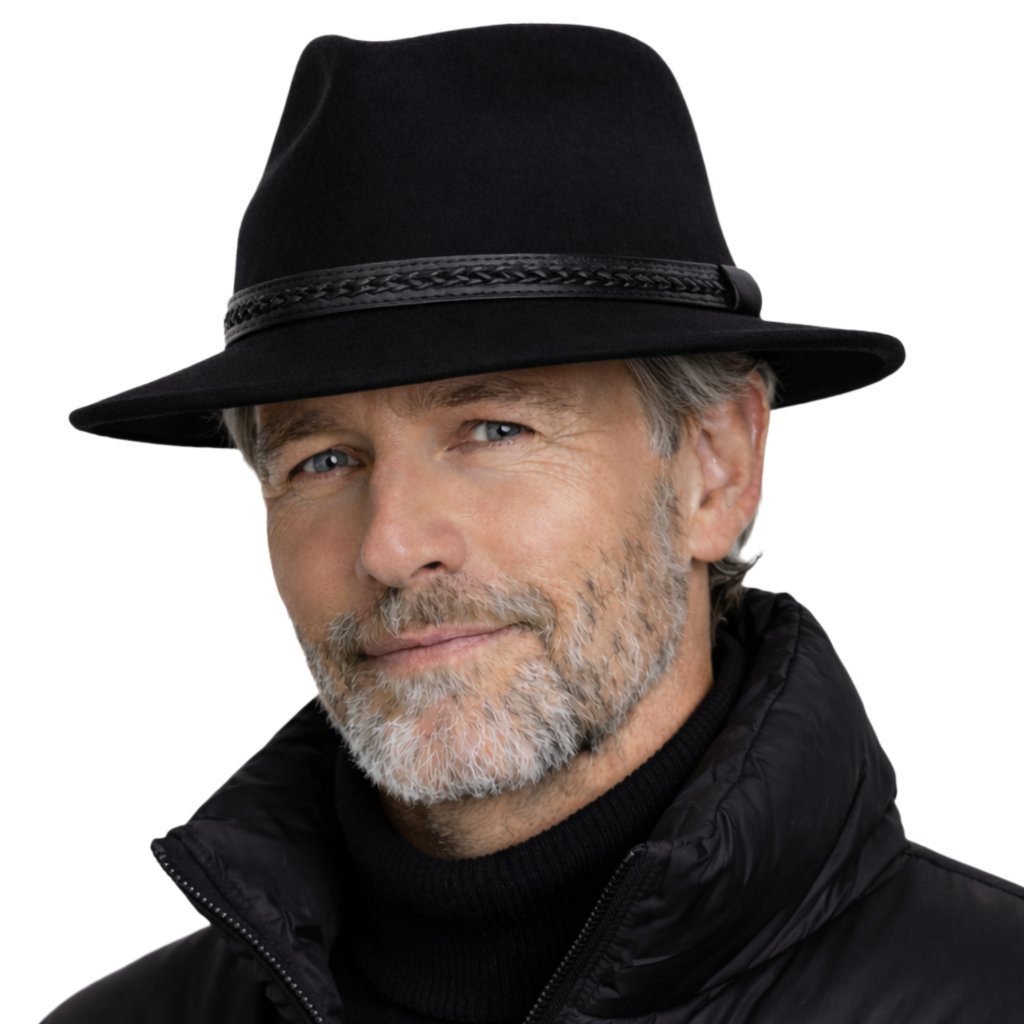 Cestovní klobouk vlněný od Fiebig - černý s koženou stuhou - širák