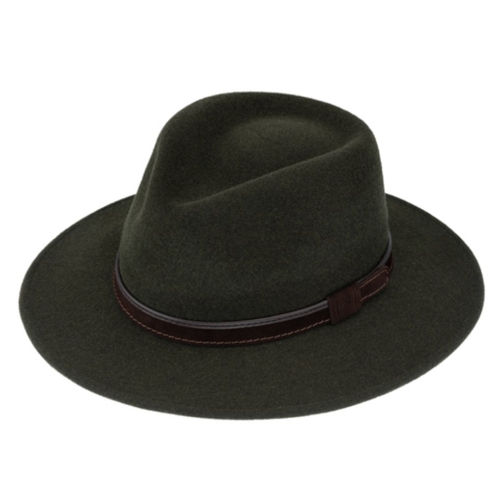 Cestovní klobouk vlněný od Fiebig - olivový s koženou stuhou