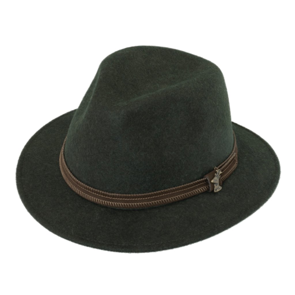 Cestovní klobouk vlněný od Fiebig - olivový s koženou stuhou