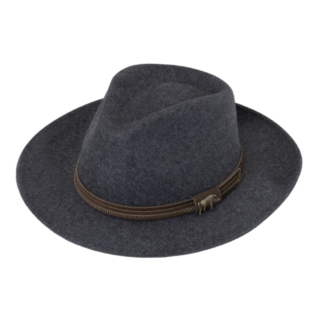 Cestovní klobouk vlněný od Fiebig - šedý s koženou stuhou
