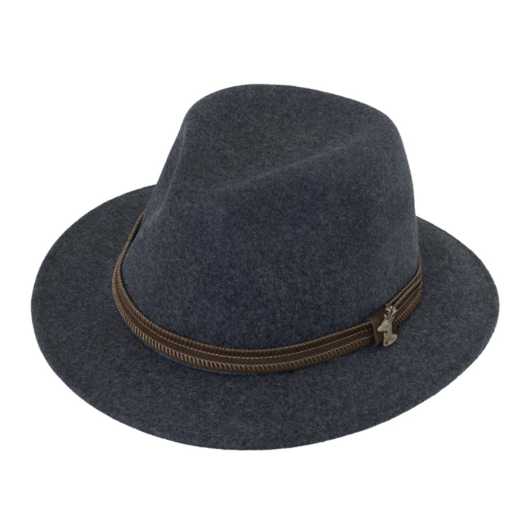 Cestovní klobouk vlněný od Fiebig - šedý s koženou stuhou
