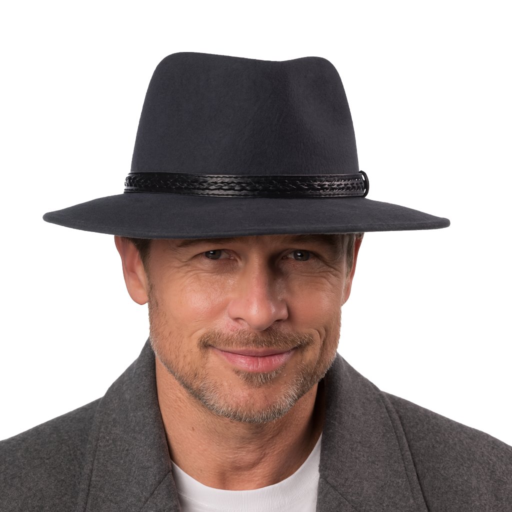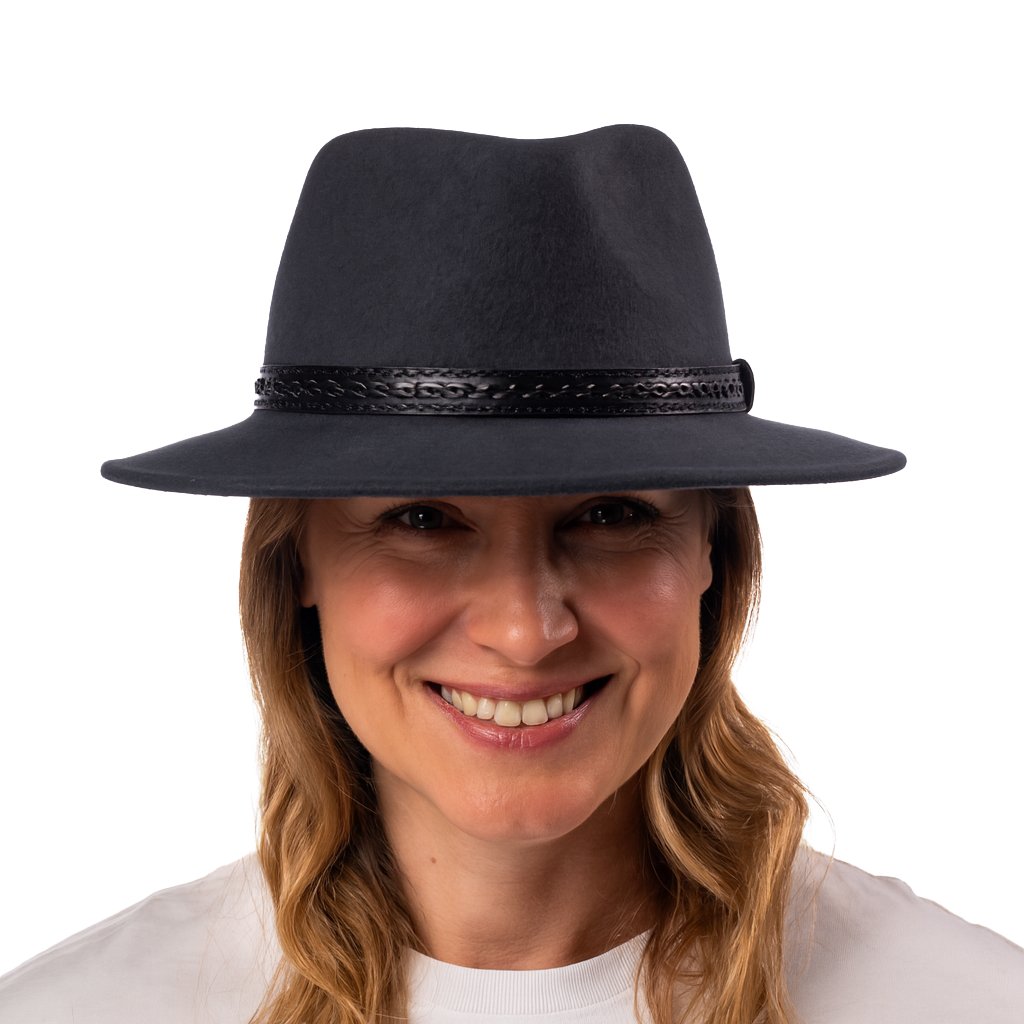 Cestovní klobouk vlněný od Fiebig - šedý s koženou stuhou - širák