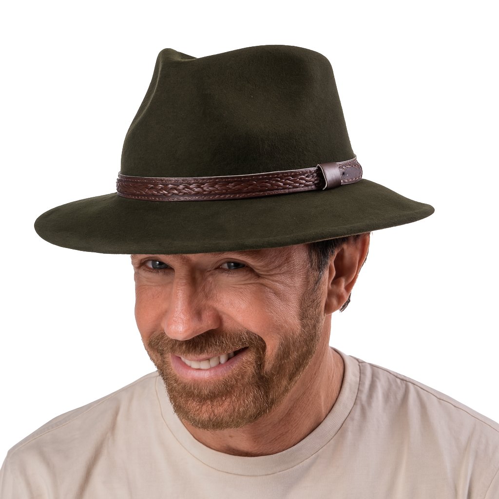 Cestovní klobouk vlněný od Fiebig - zelený s koženou stuhou - širák