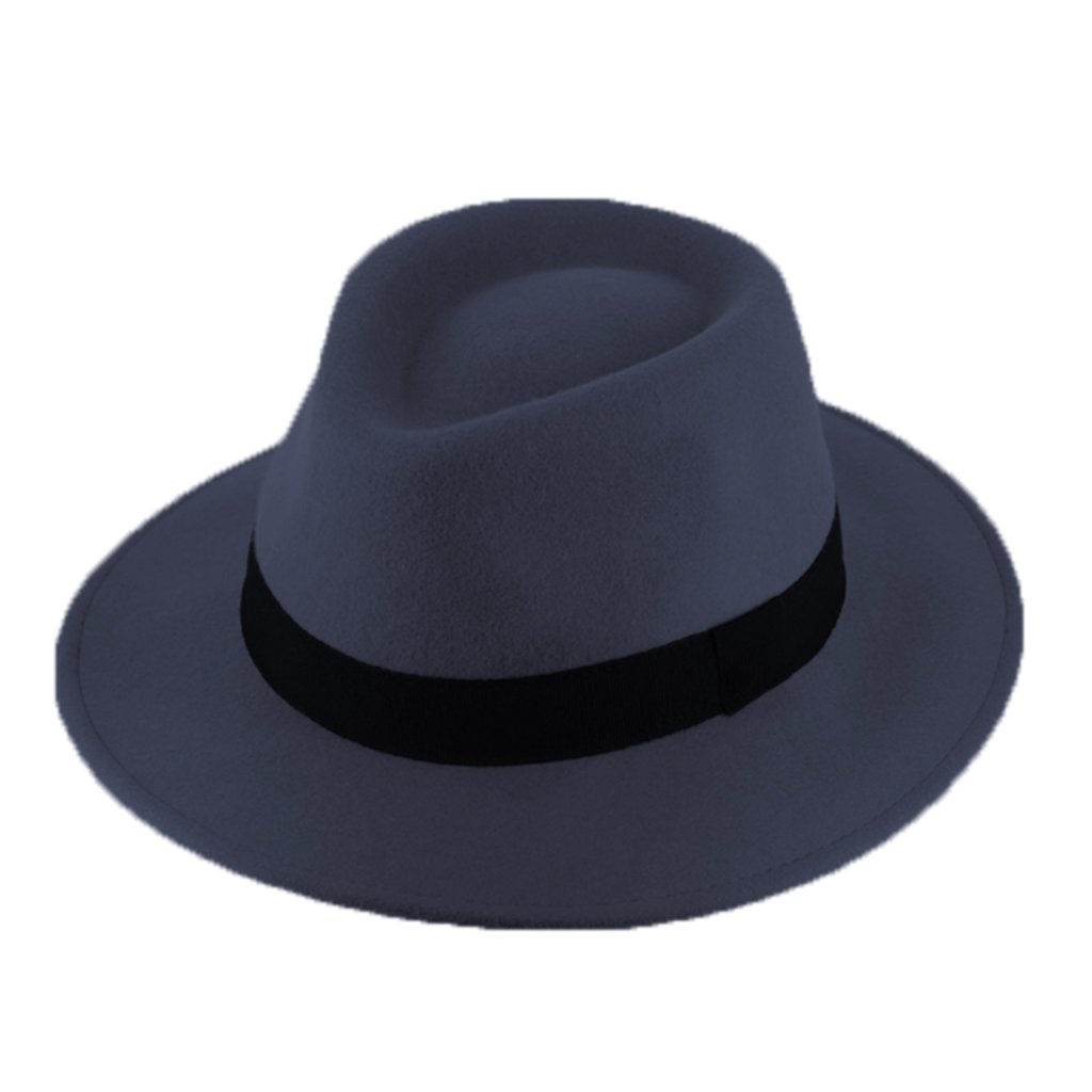 Cestovní nemačkavý klobouk vlněný od Fiebig - modrý s černou stuhou