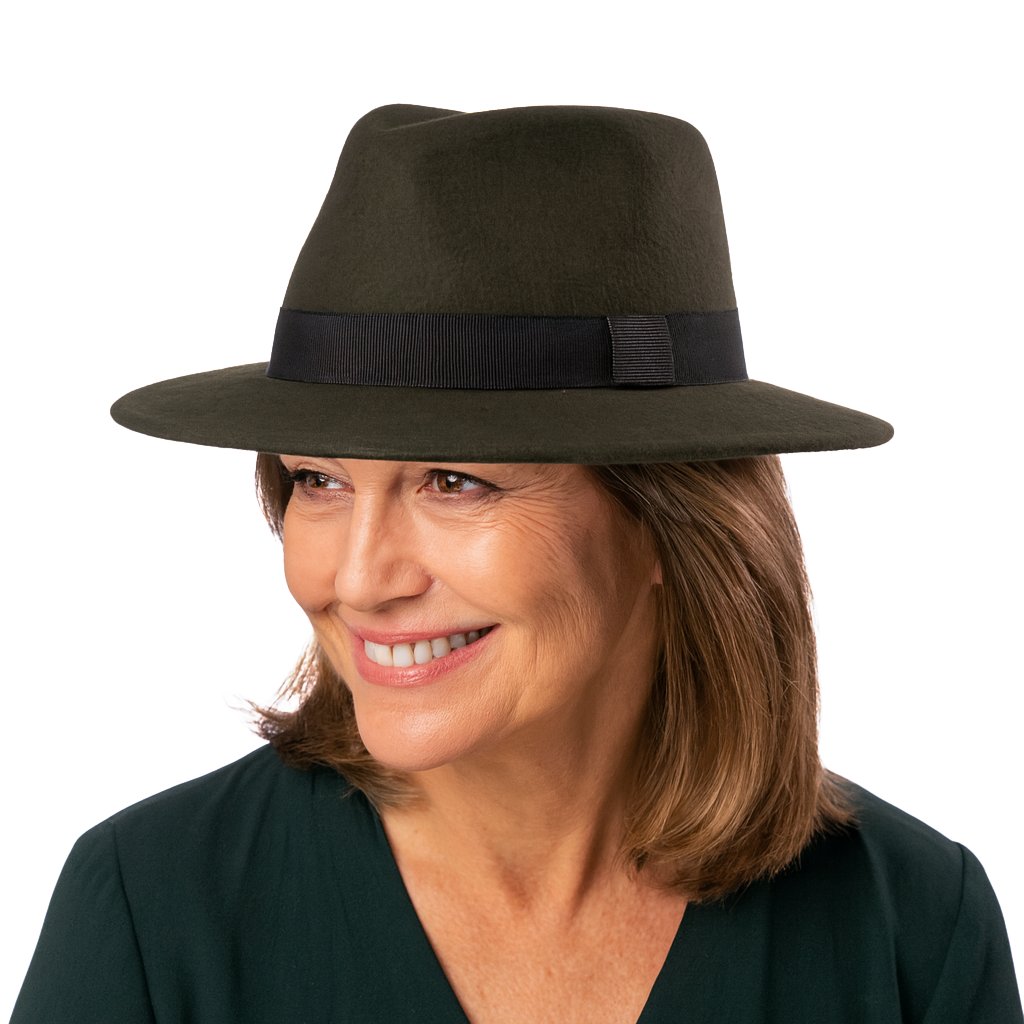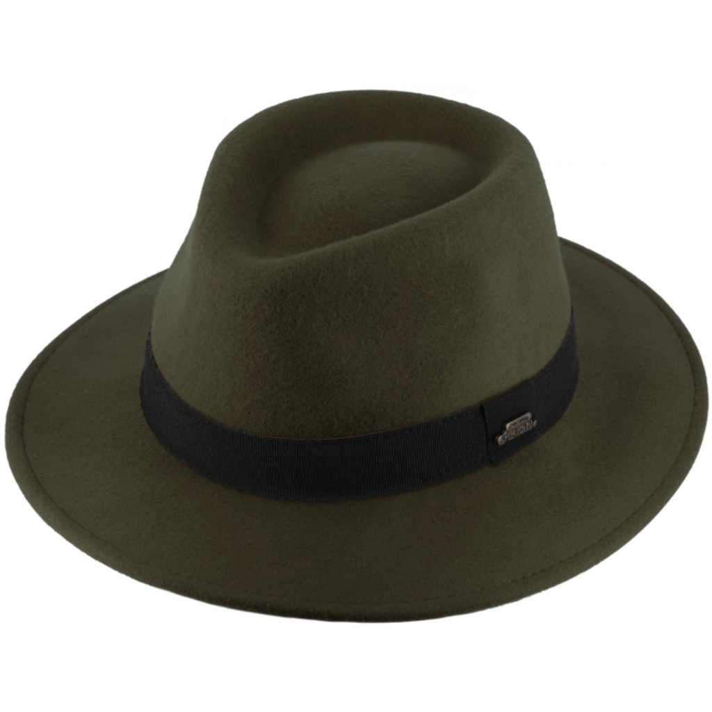 Cestovní nemačkavý klobouk vlněný od Fiebig - zelený s černou stuhou