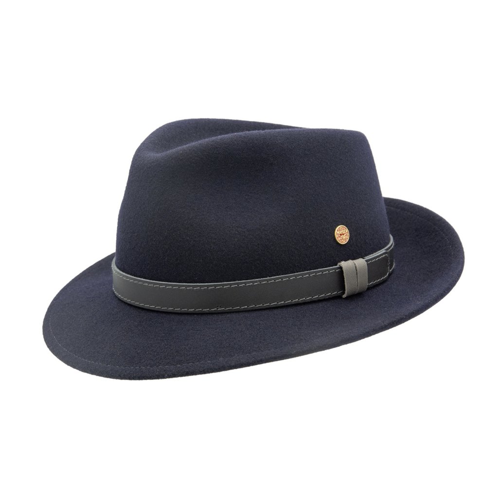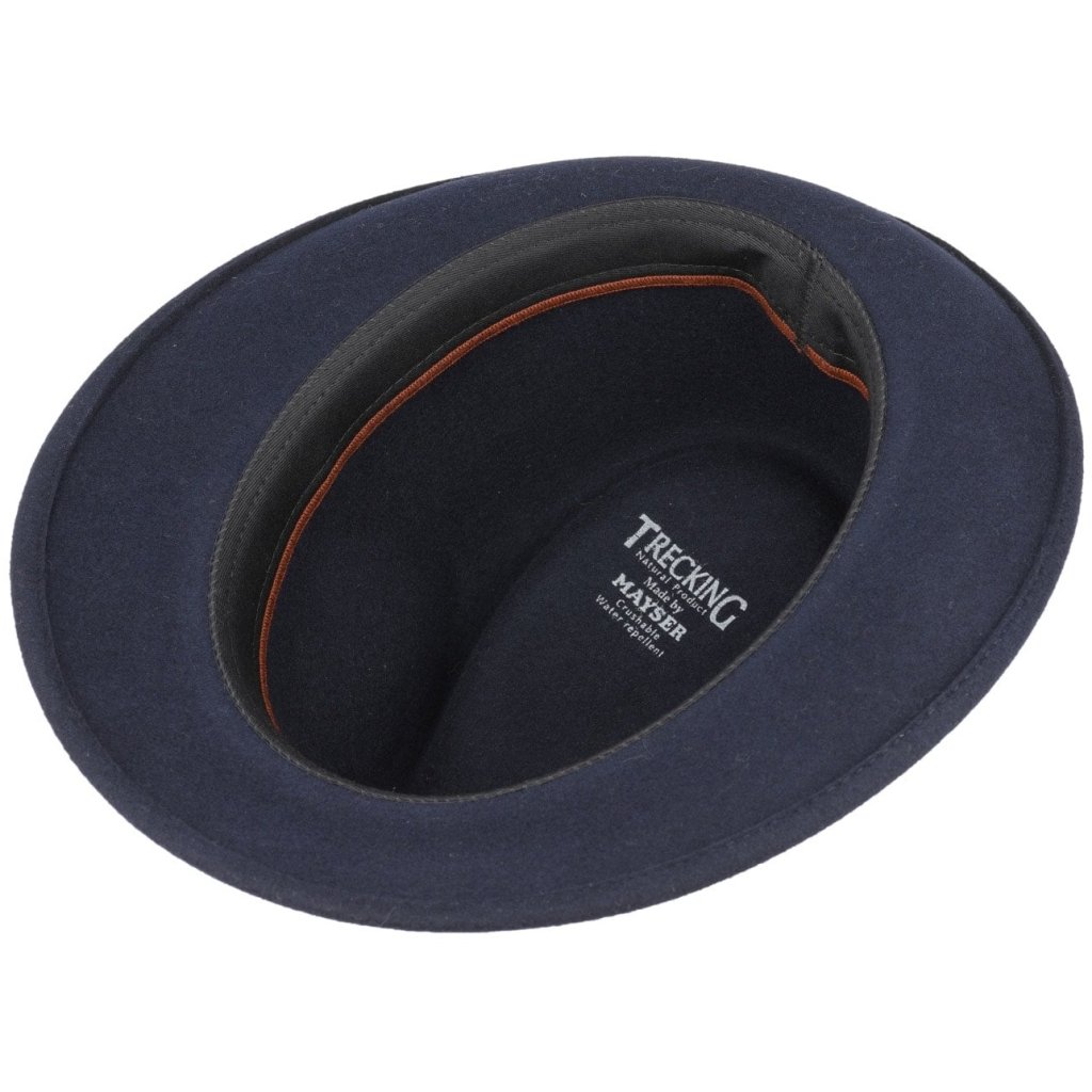 Cestovní nemačkavý voděodolný modrý klobouk Mayser s černou stuhou - Denver Traveller