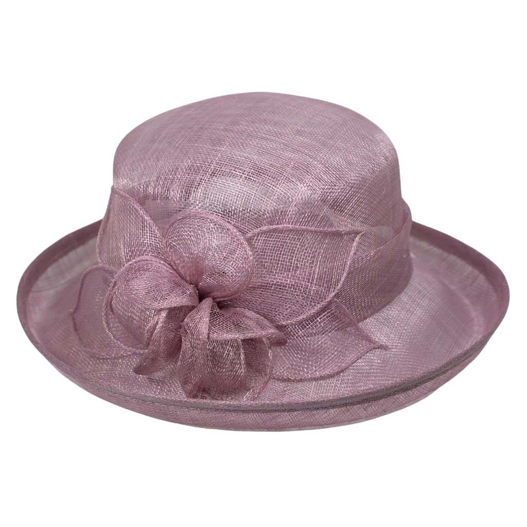 Cloche ametyst slavnostní klobouček s ozdobou - ze sisálové slámy