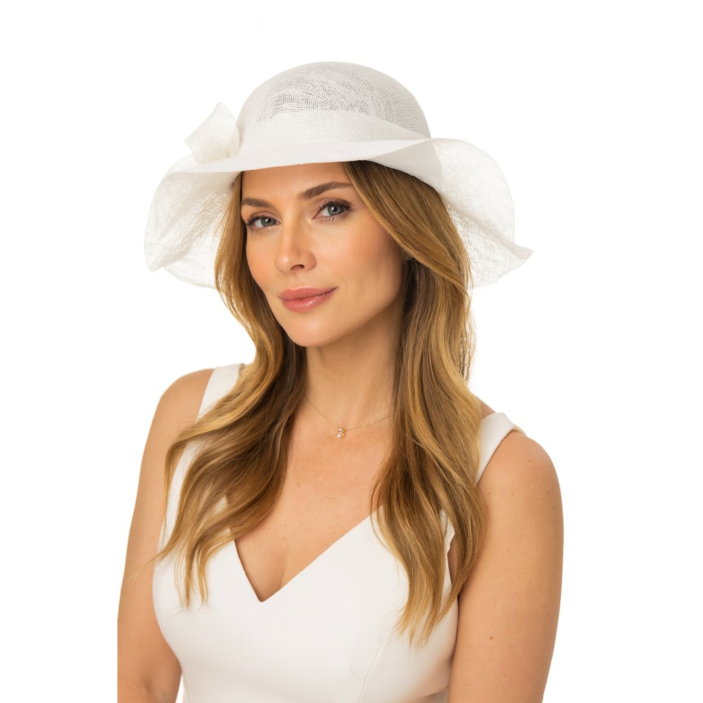 Slavnostní bílý klobouk s ozdobou - ze sisálové slámy