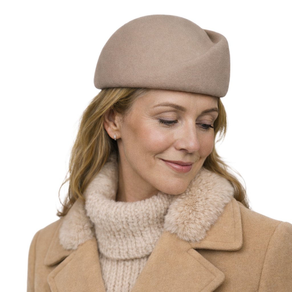 Použitá plsť z kvalitní vlny je středně pevná, takže si klobouk dlouhodobě zachovává svůj tvar a nepůsobí splihle ani po častém nošení. Materiál zároveň poskytuje příjemný tepelný komfort, což z této lodičky dělá ideální volbu pro podzimní a zimní období. Klobouk se dobře usazuje na hlavě, nepůsobí těžce a přirozeně doplňuje siluetu.
