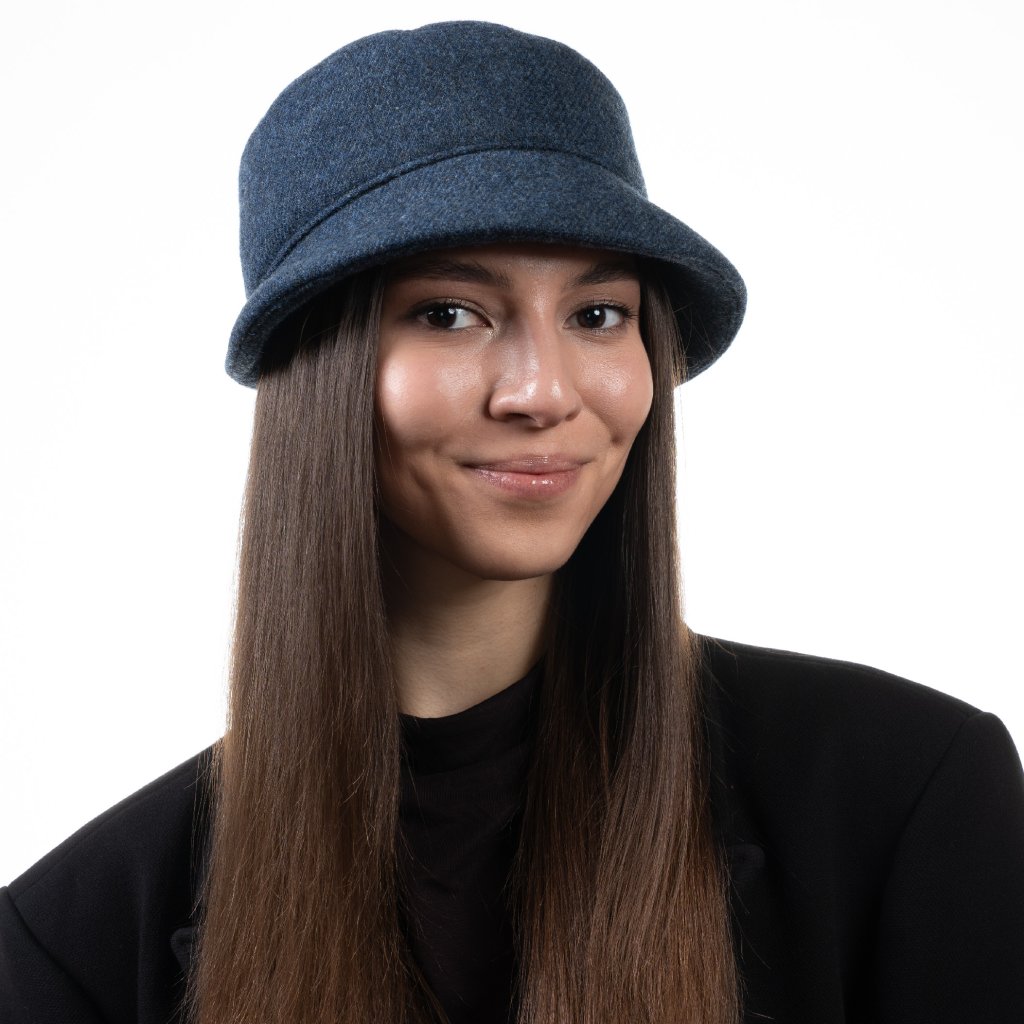 Dámský zimní vlněný bucket hat – tmavě modrá shetlandská vlna