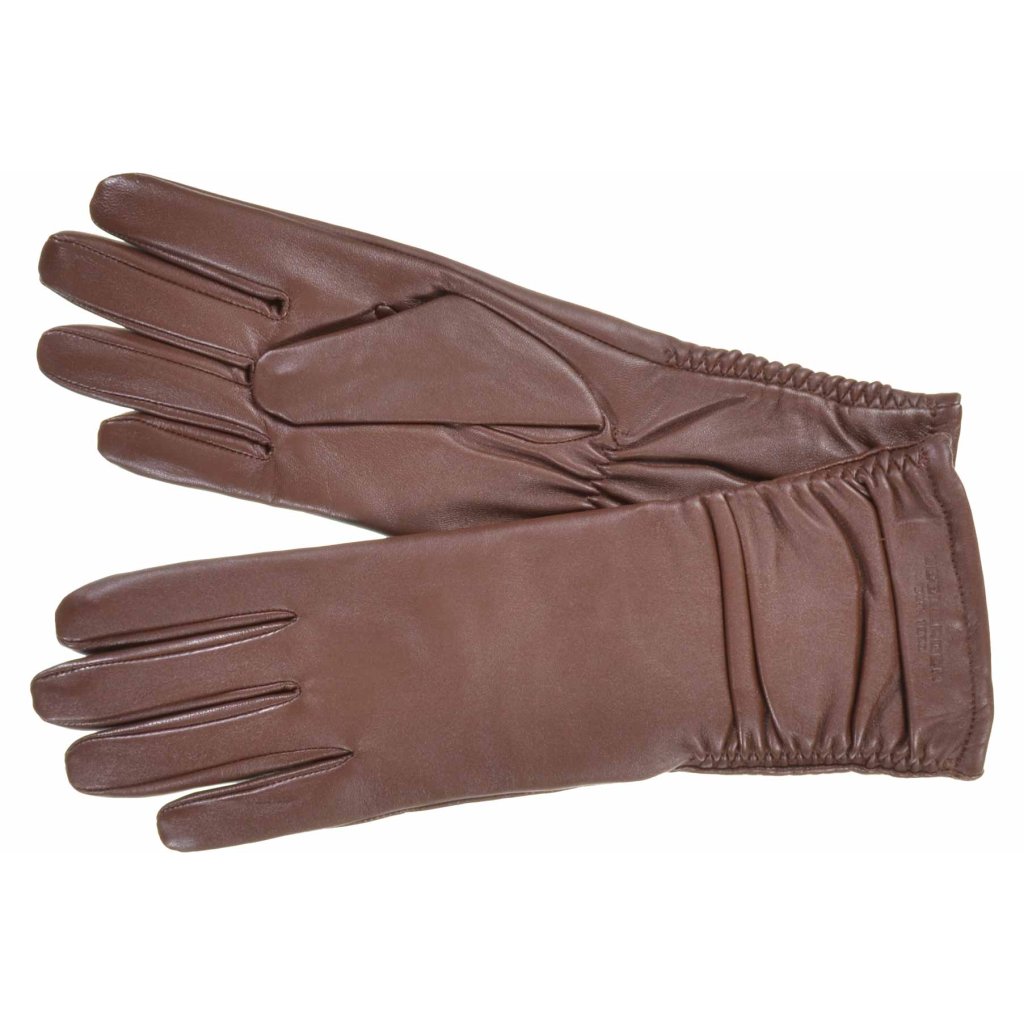 Dámské kožené rukavice Seeberger s řasením – hnědé
