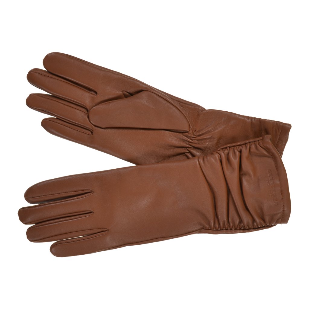 Dámské karamelové kožené rukavice Seeberger s řasením