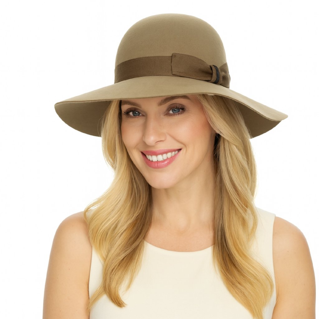 Dámský béžový kašmírový klobouk floppy s širokou krempou - limitovaná kolekce Fléchet