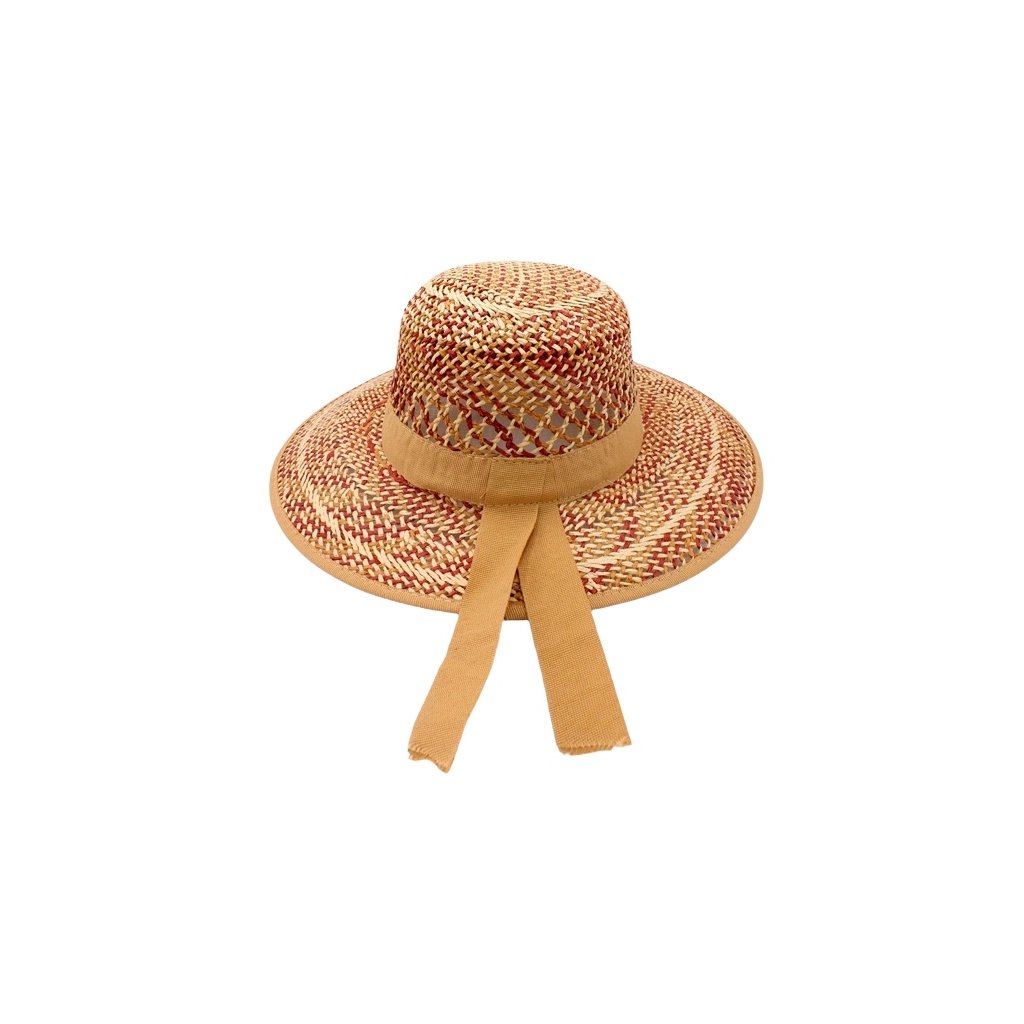 Letní dámský klobouček Fiebig. Mašle vzadu, v zadní častí zkrácená krempa.