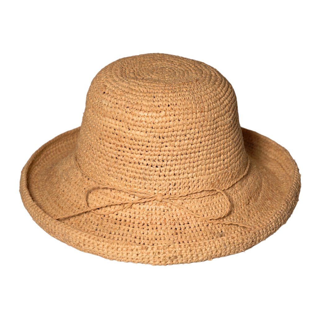 Dámský letní nemačkavý slaměný (raffie) klobouk Cloche - Crochet Cloche