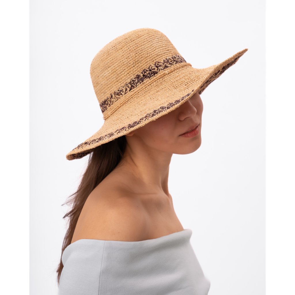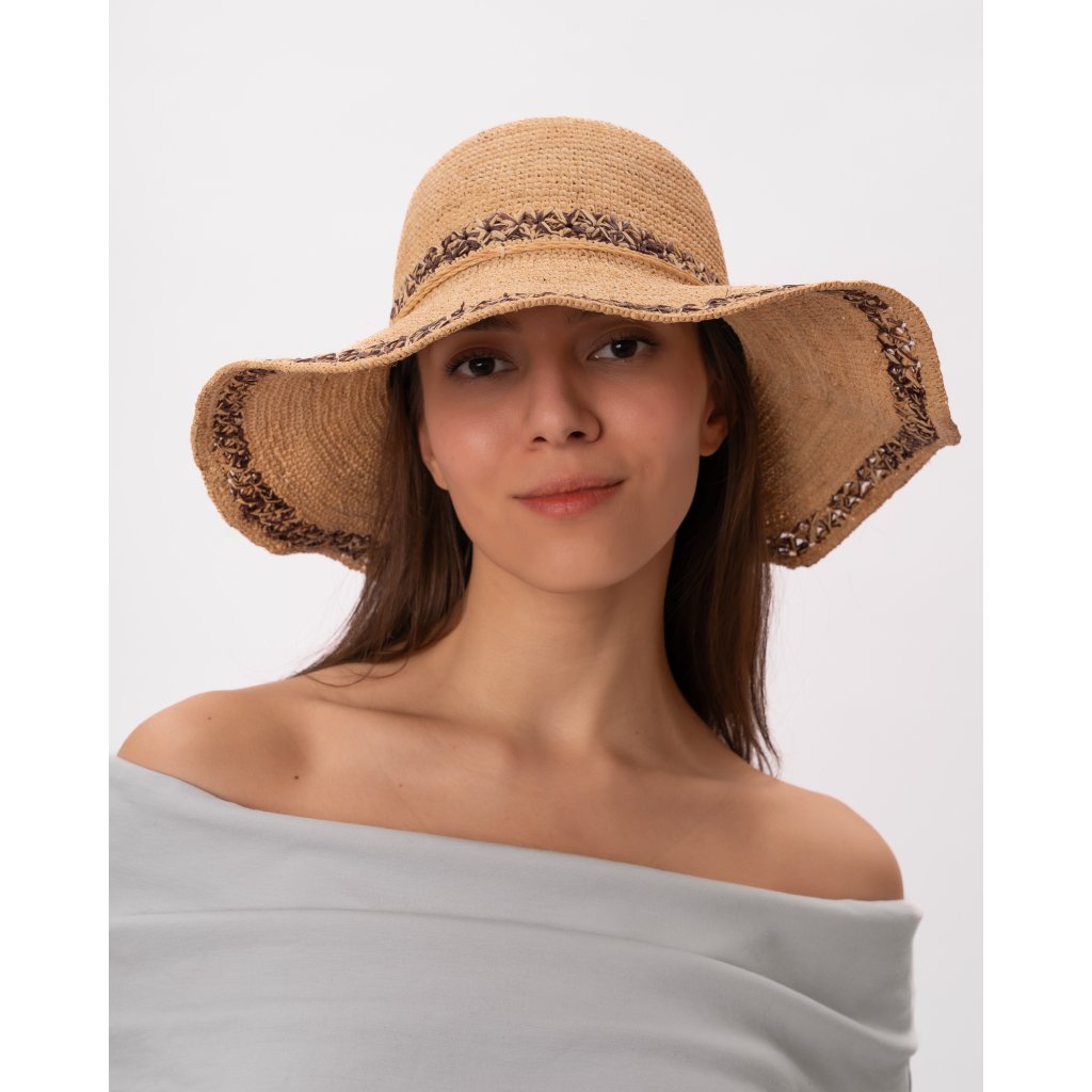 Dámský letní nemačkavý slaměný klobouk Big Brim - Crochet béžovohnědý