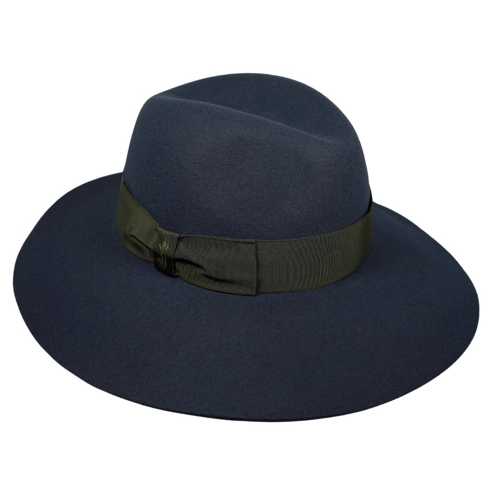 Dámský modrý klobouk s zelenou stuhou - široká krempa