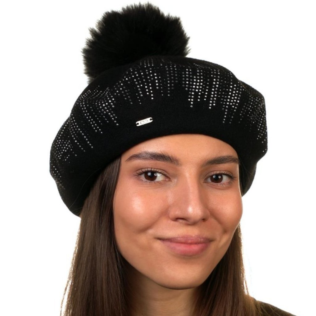 Dámský zimní černý baret ozdobený - Willi Perlesa