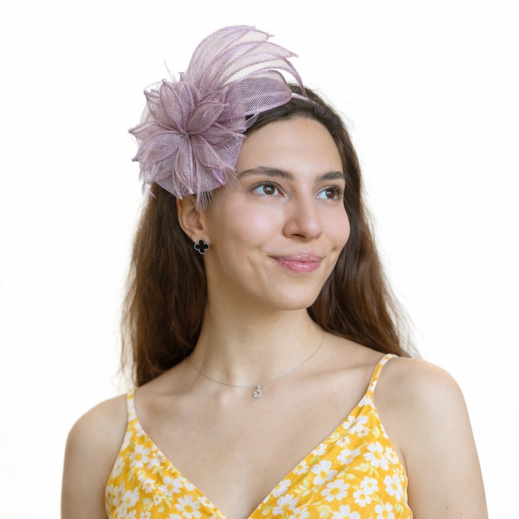 Dámský fascinator na čelence s květinou – ametystový