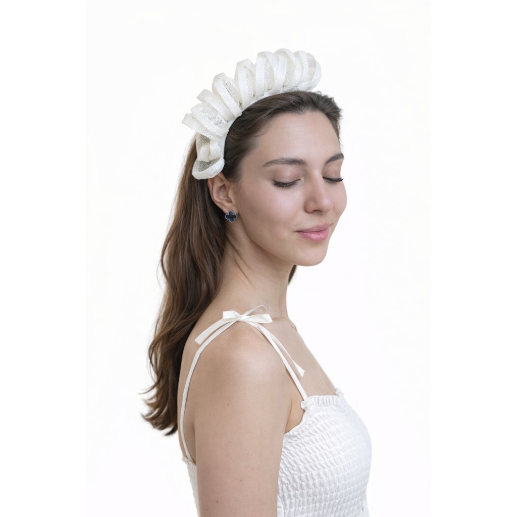 Bílý dámský fascinátor pro slavnostní příležitosti