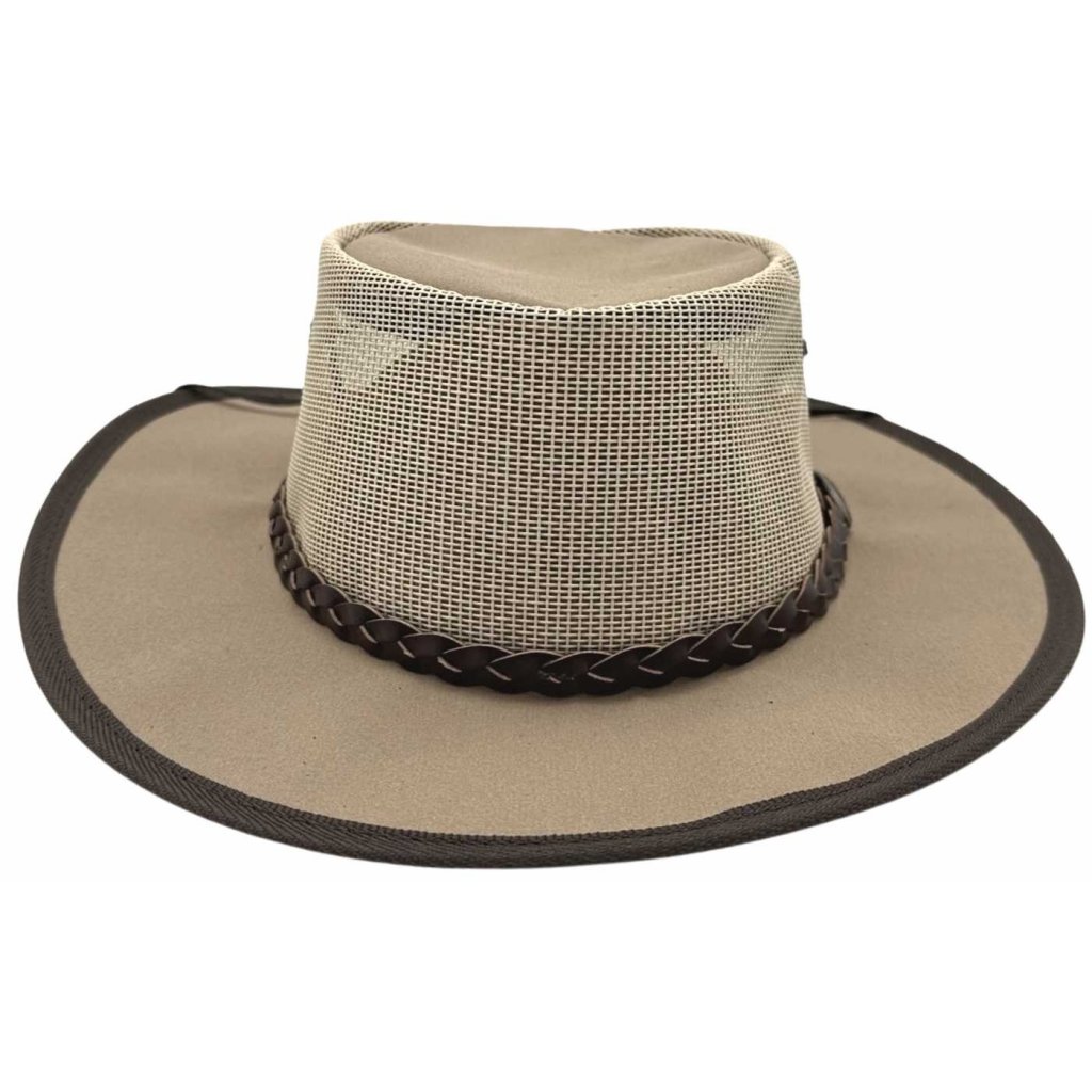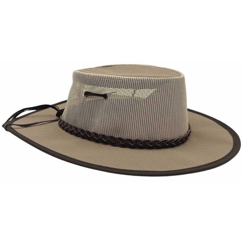 Jacaru Bush Breeze Camper je vyroben z pevného, ale lehkého plátna s korunkou ze síťoviny, která zajišťuje pohodlí i v tom největším vedru. Tkanice pod bradu udrží klobouk na hlavě, ať už jdete po hřebeni, nebo sedíte v kánoi.
