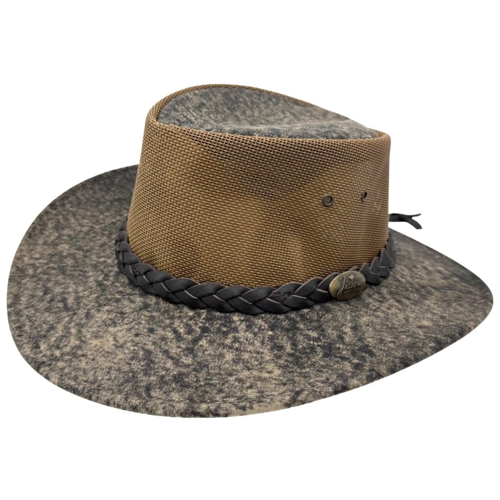 Jacaru Dingo Koolaroo – letní australský klobouk s koženou krempou a prodyšnou korunou