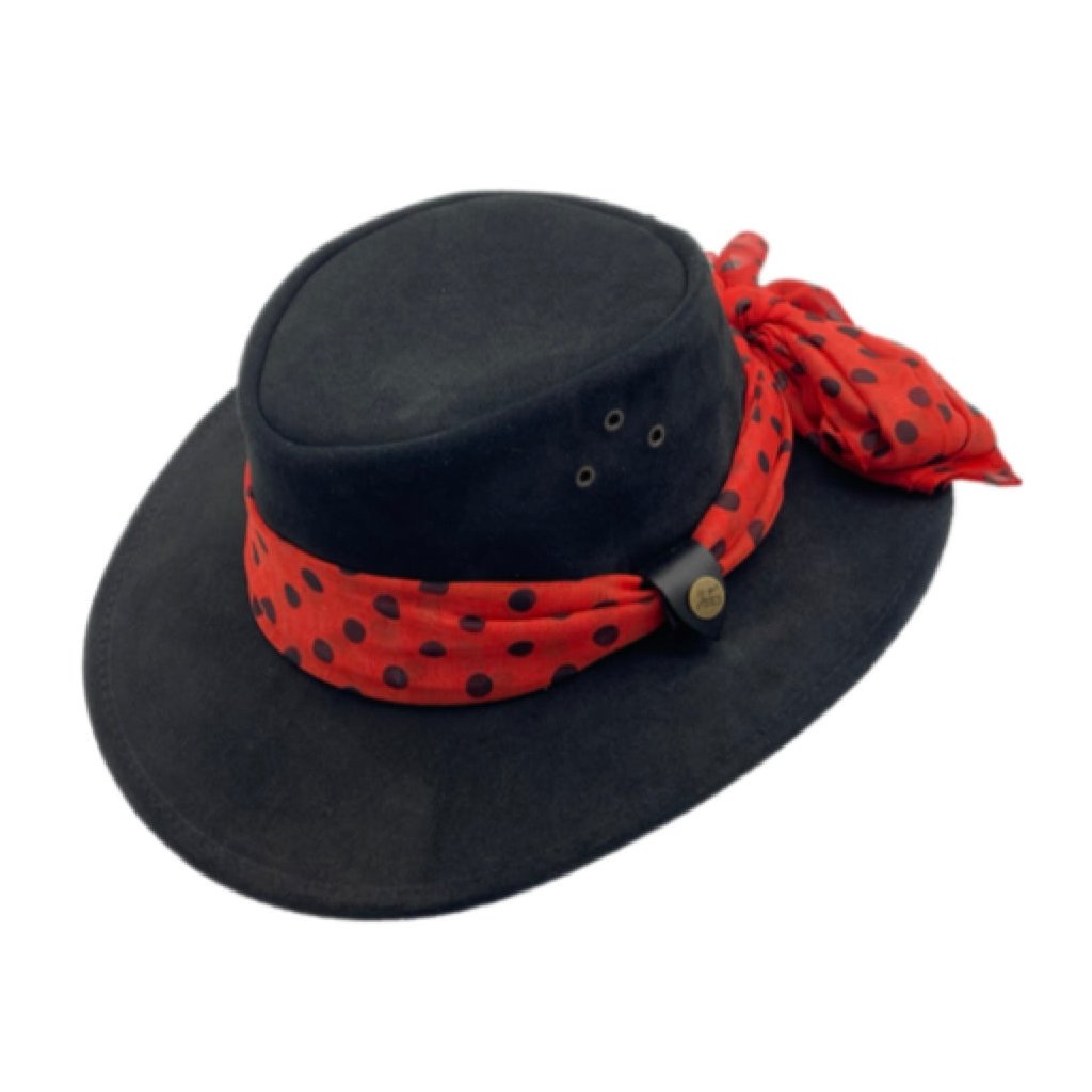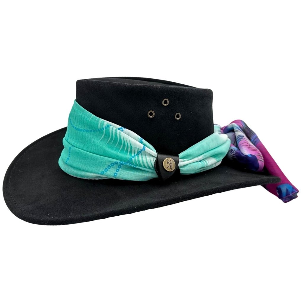 Jacaru Jillaroo černý – dámský klobouk z broušené kůže s šátkem