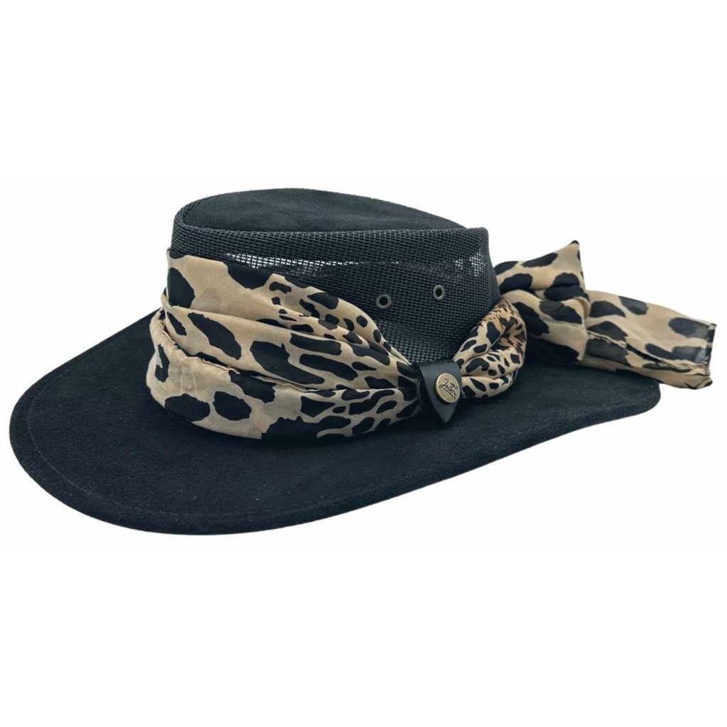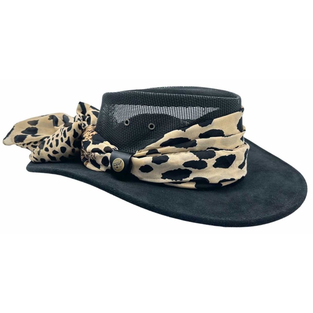 Jacaru Shady Lady – černý dámský australský klobouk z broušené kůže