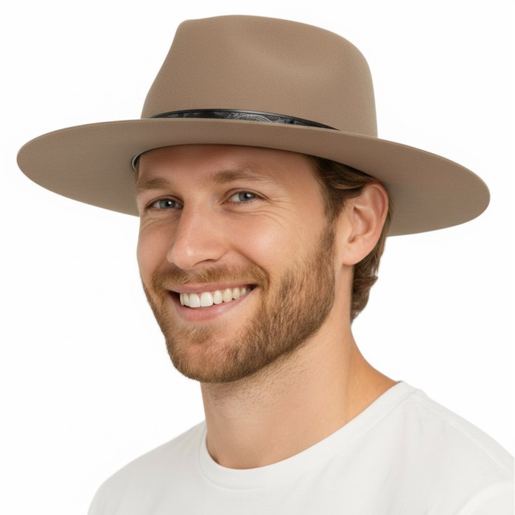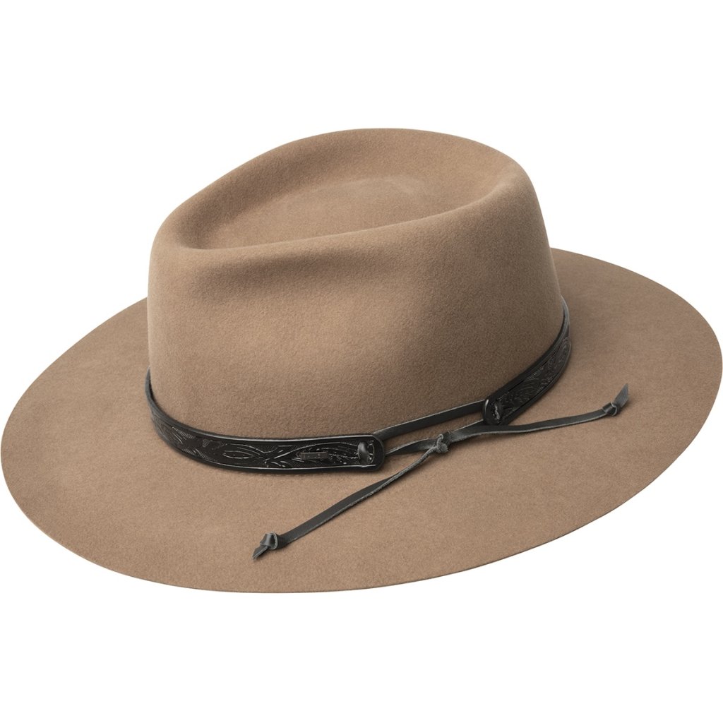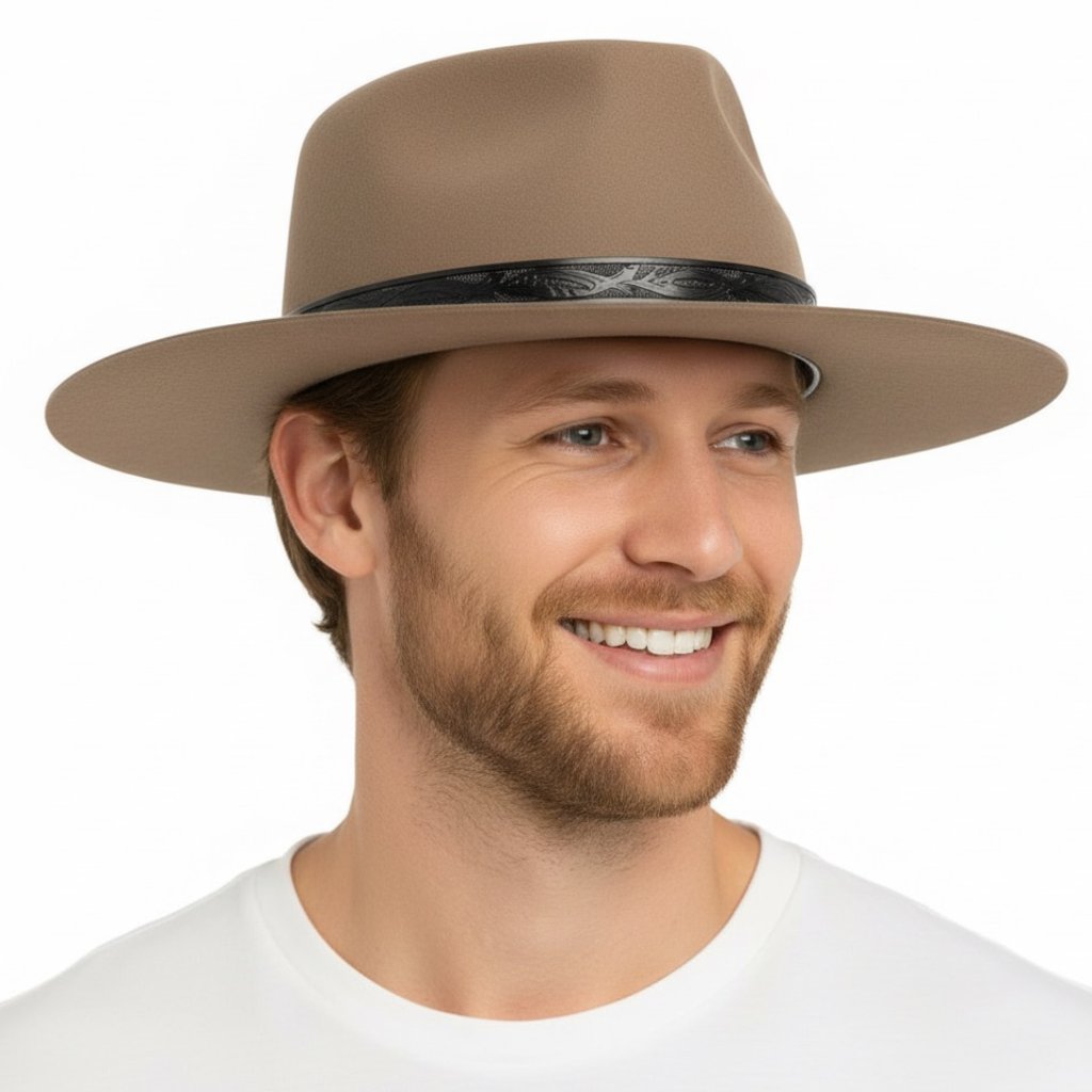 Klobouk je vyroben z kvalitní 100% vlněné plsti, plně podšitý a doplněný reliéfním koženým páskem s westernovým vzorem. Uvnitř najdete jemný tkaný potní pásek pro celodenní pohodlí.