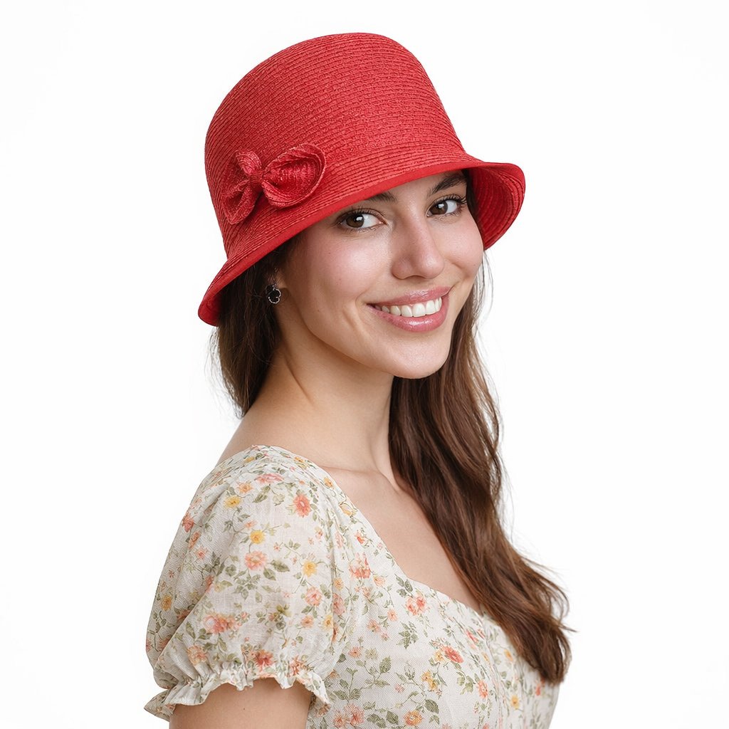Dekorativní mašle na boku spolu s kontrastním lemem podtrhují sofistikovaný vzhled, který se skvěle hodí k letním šatům, městskému outfitu i slavnostnějším příležitostem. Klobouk působí lehce, vzdušně a velmi přirozeně.