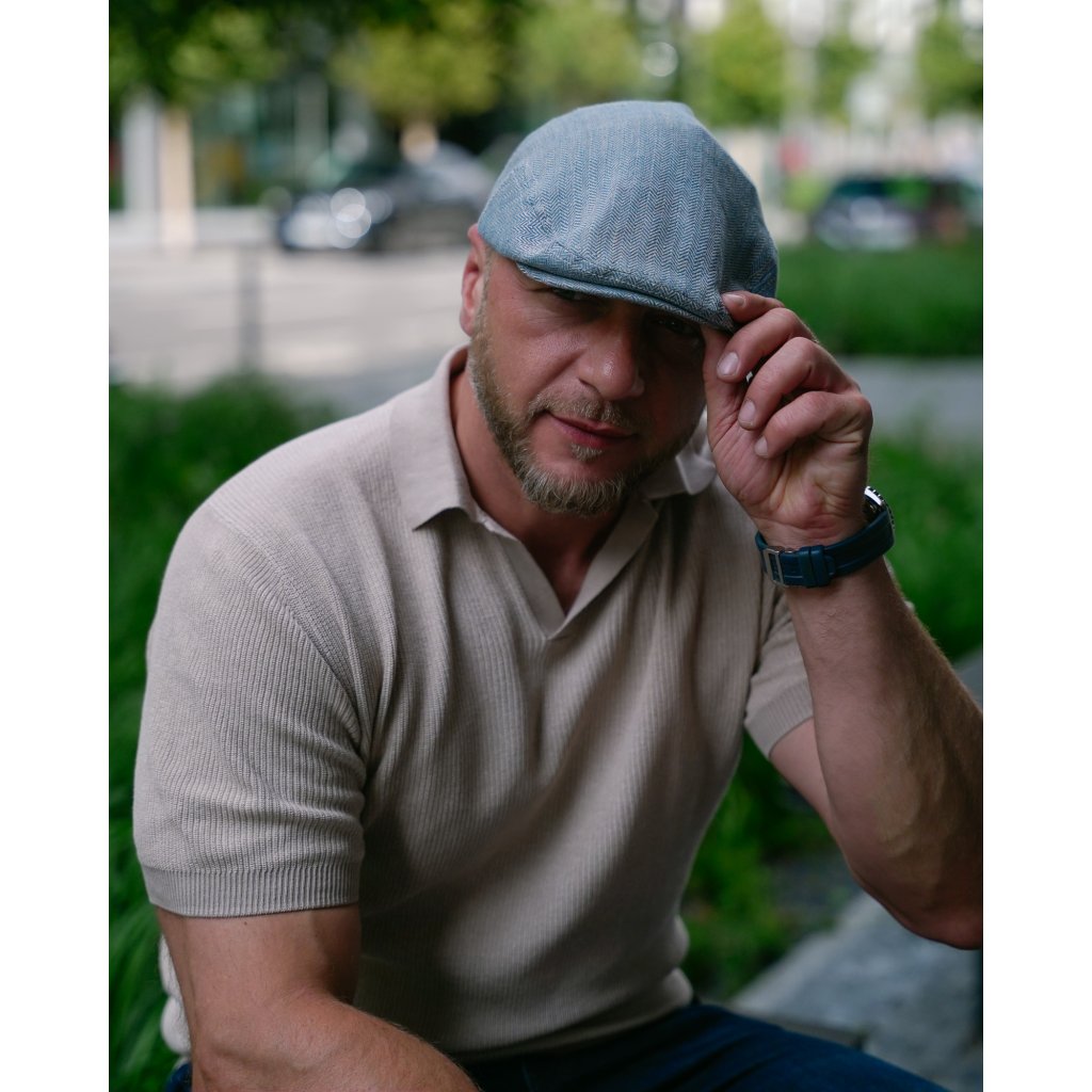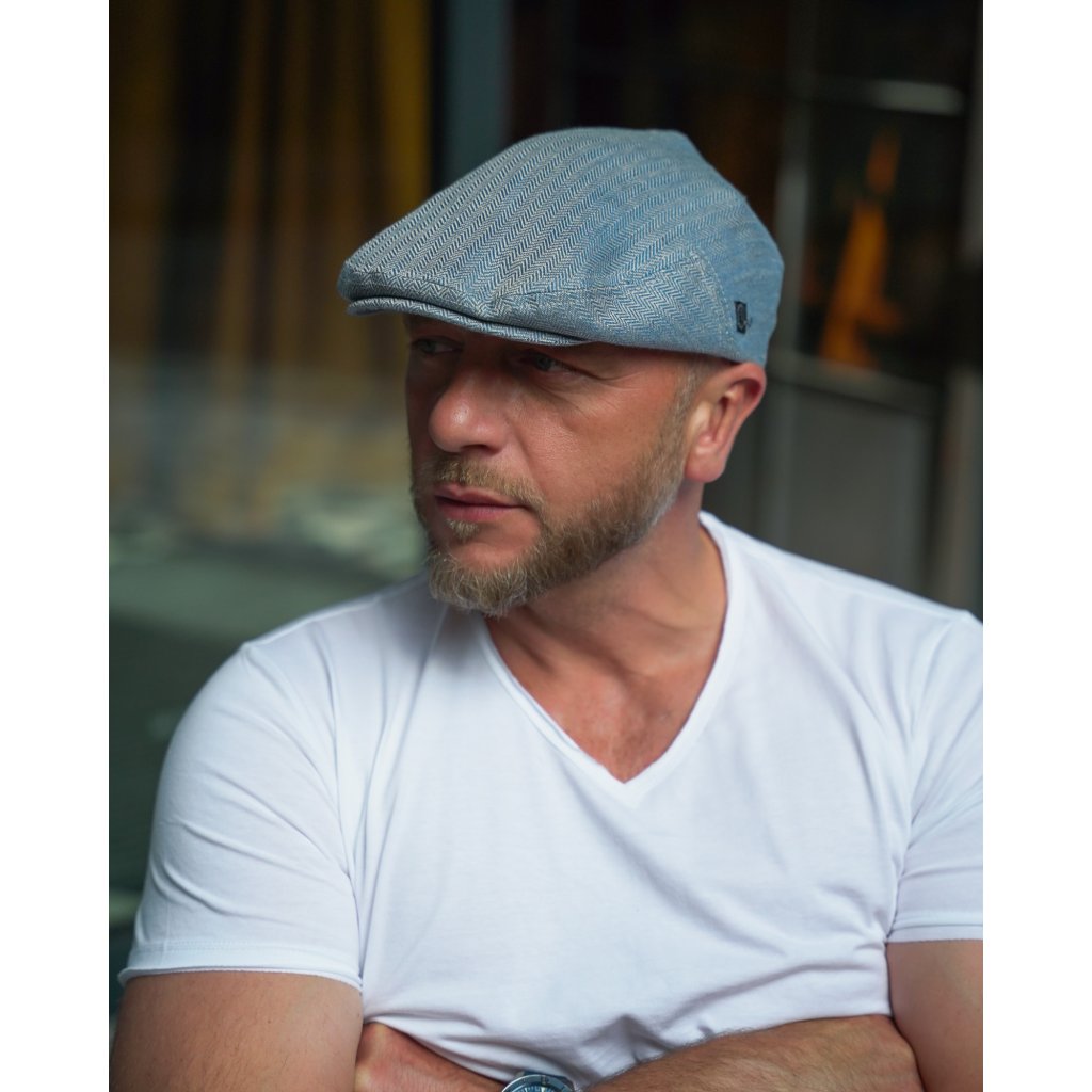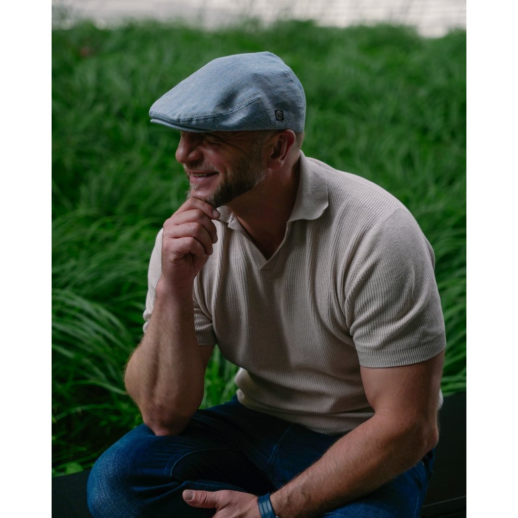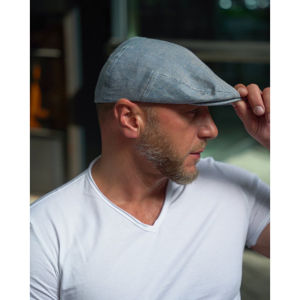 Letní lněná modrá bekovka - driver cap - od CTH Ericson - Edward