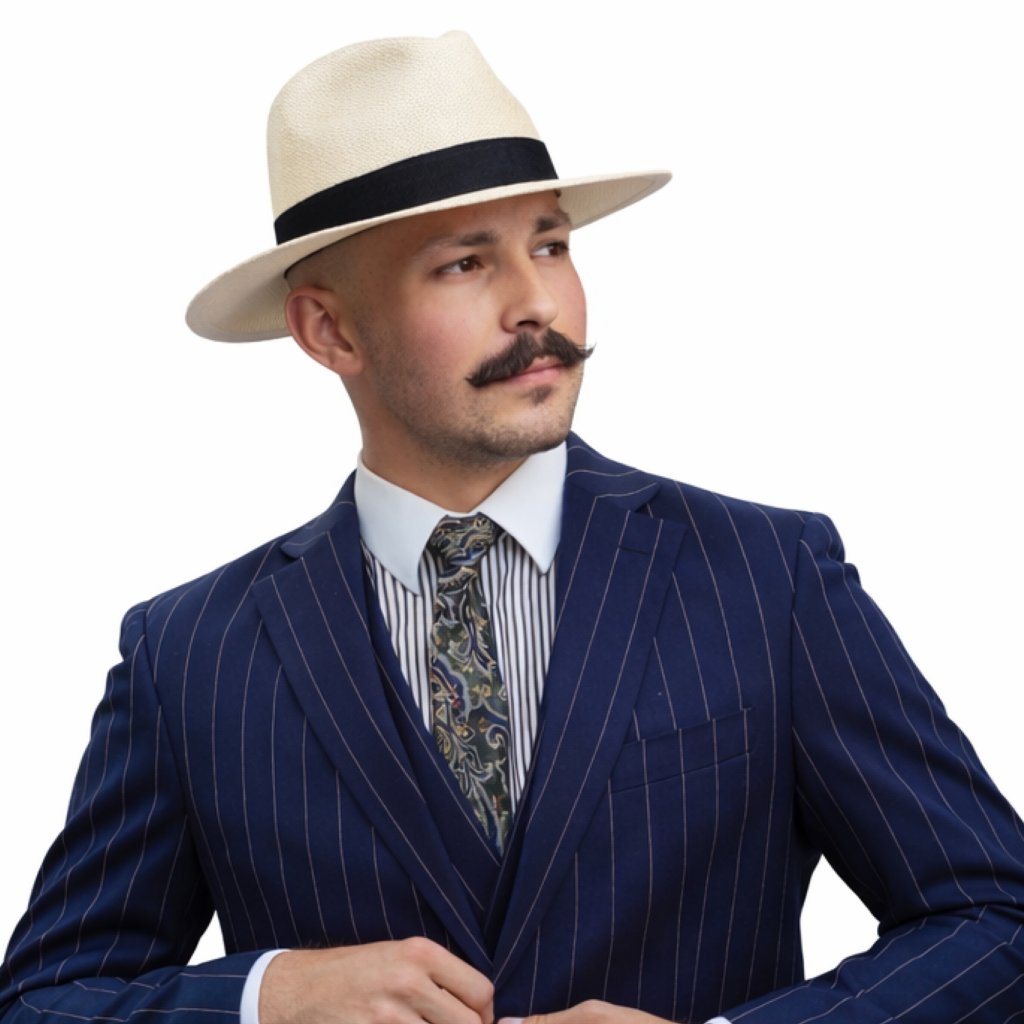 Luxusní panamský klobouk Fedora s černou stuhou - Mayser Menton - UV faktor 80