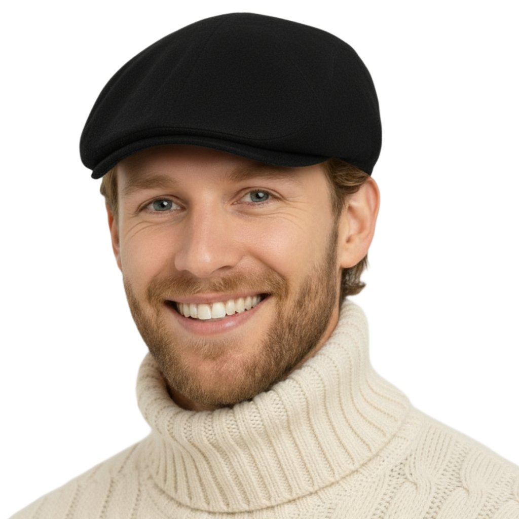 Luxusní černá kašmírová bekovka od Fiebig - Driver cap Cashmere