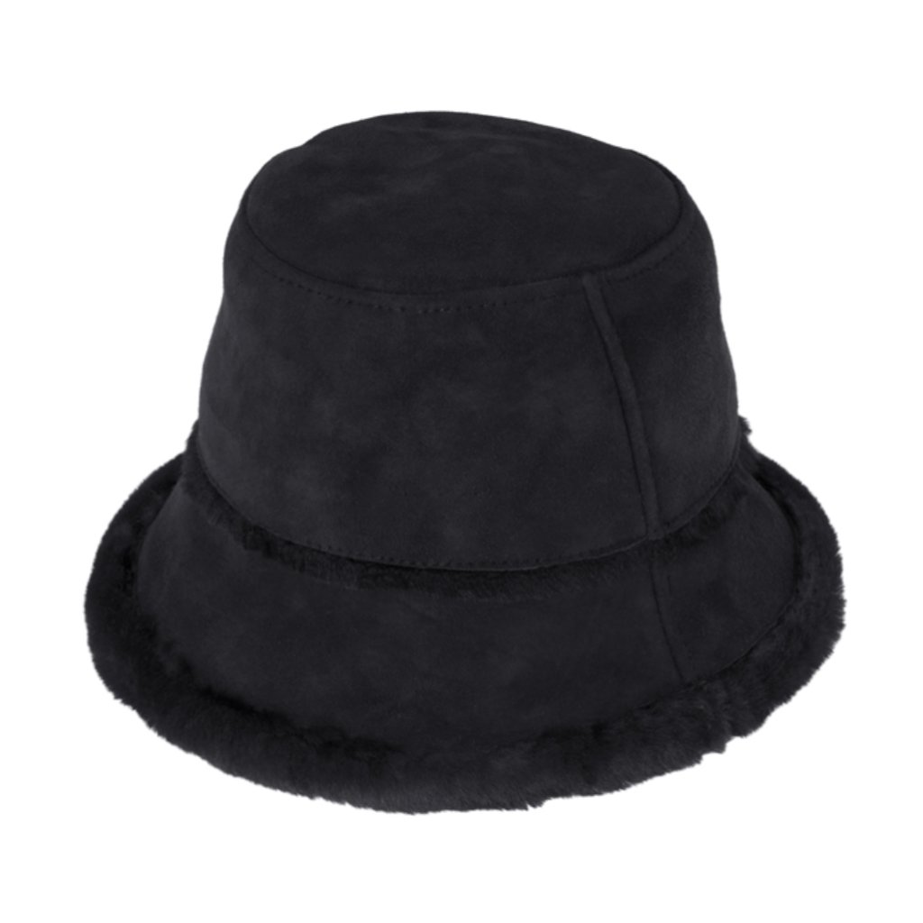 Luxusní černý bucket hat z ovčí kůže s kožešinovou krempou - zimní klobouk - Fiebig 1903