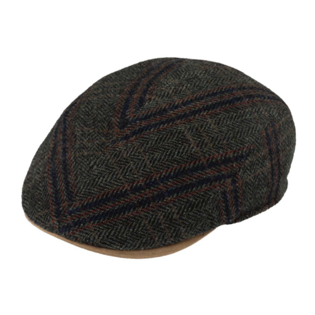 Pánská olivová vlněná bekovka rybí kost - Fiebig - Harris Tweed