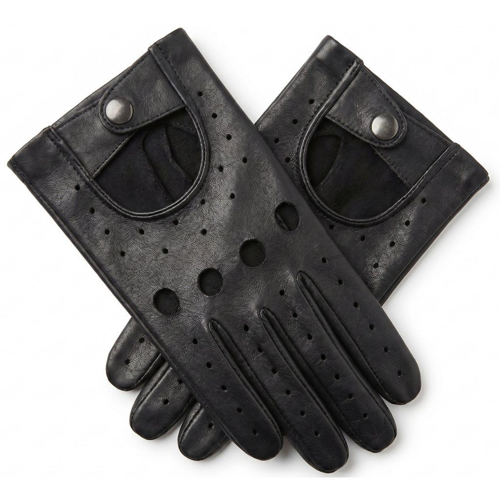 Luxusní rukavice z jehněčí kůže bez podšívky, s rozparkem a drukem. Pánské kožené rukavice na řízení auta nebo skútru. Ideální doplněk pro městský styl.