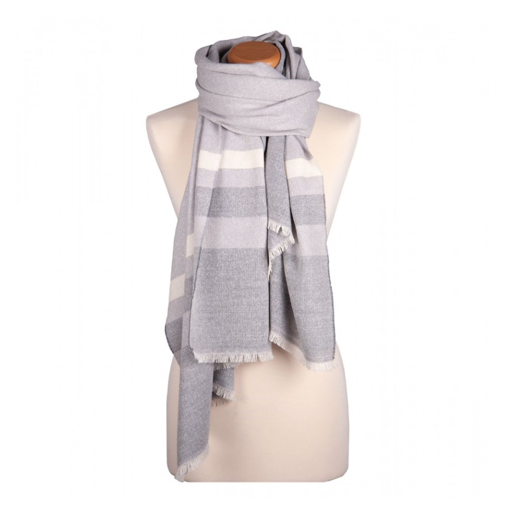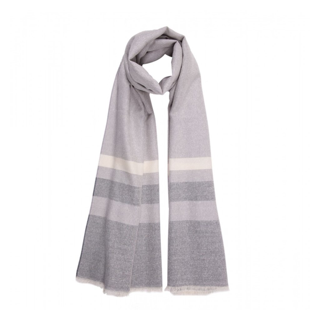 Elegantní šála, která spojuje jemnost hedvábí a hřejivost vlny. Díky svému složení (53 % hedvábí, 47 % vlna) je mimořádně příjemná na dotek, lehká a přitom dostatečně teplá. Kombinace světle a tmavě šedých pruhů působí sofistikovaně a nadčasově – snadno ji sladíte s kabátem, bundou i sakem.