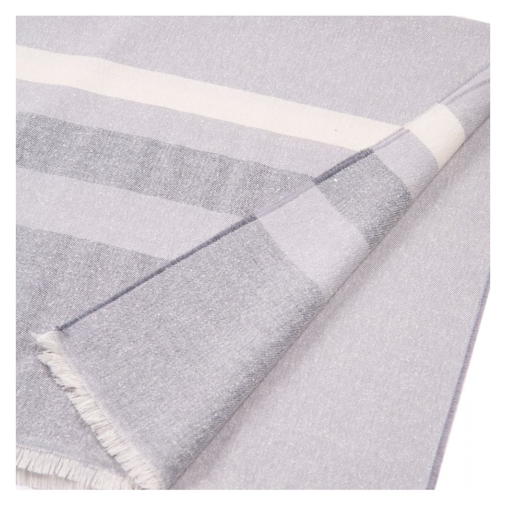 Šedá šála z hedvábí a vlny s pruhy 70×200 cm