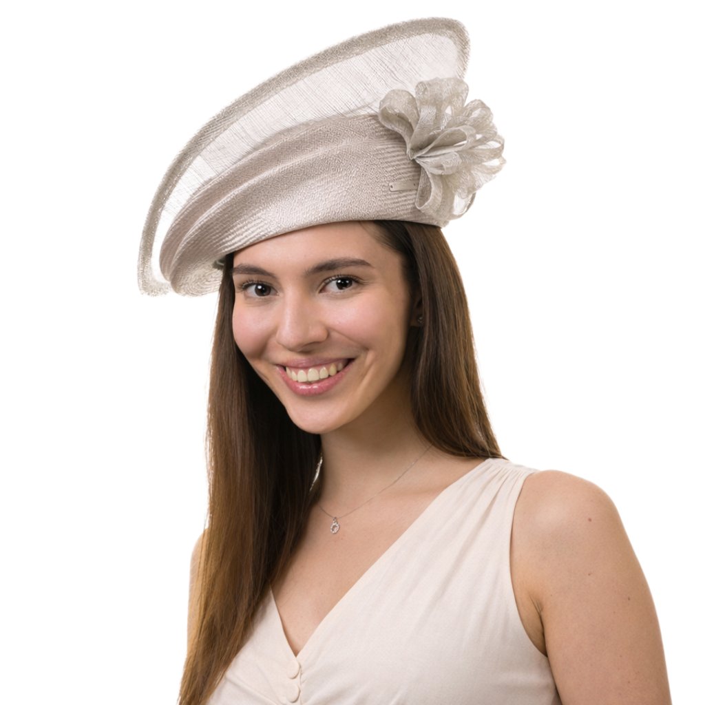 Barevné provedení působí jemně, slavnostně a velmi elegantně. Dekorativní květ na boku klobouku podtrhuje ženský charakter modelu a dodává mu výrazný slavnostní akcent, aniž by působil přehnaně. Klobouk krásně doplní šaty i formální společenský outfit.