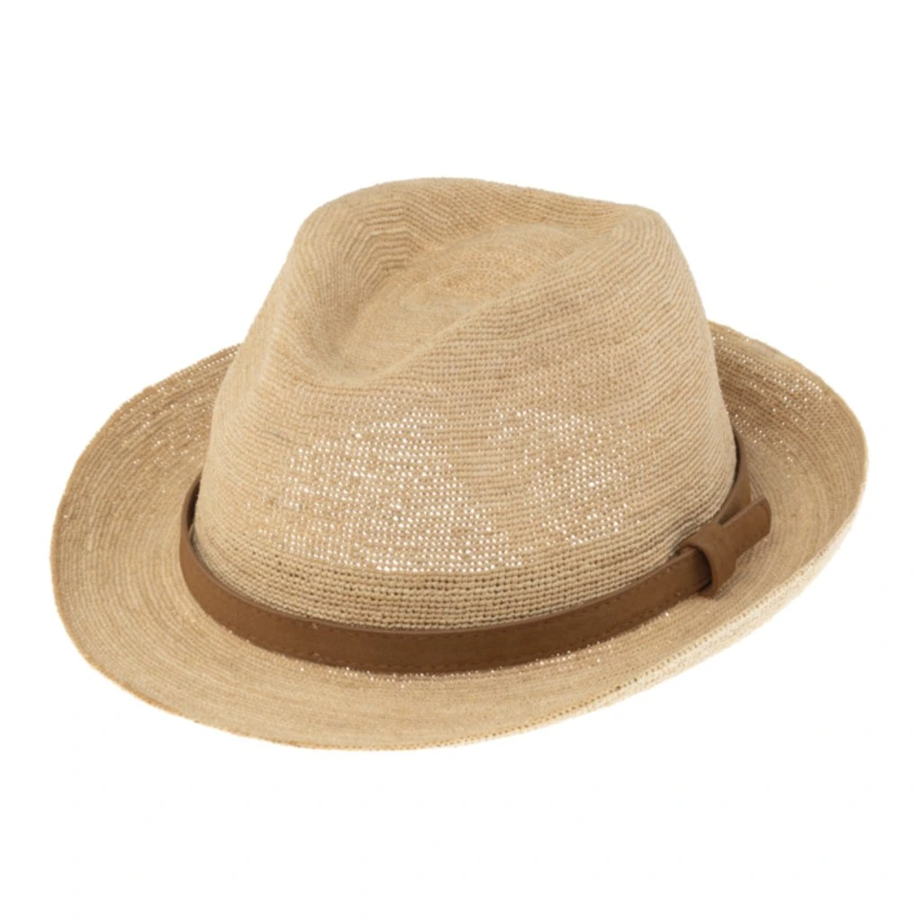 Trilby Raffia - slaměný béžový Crochet klobouk s semišovou stuhou