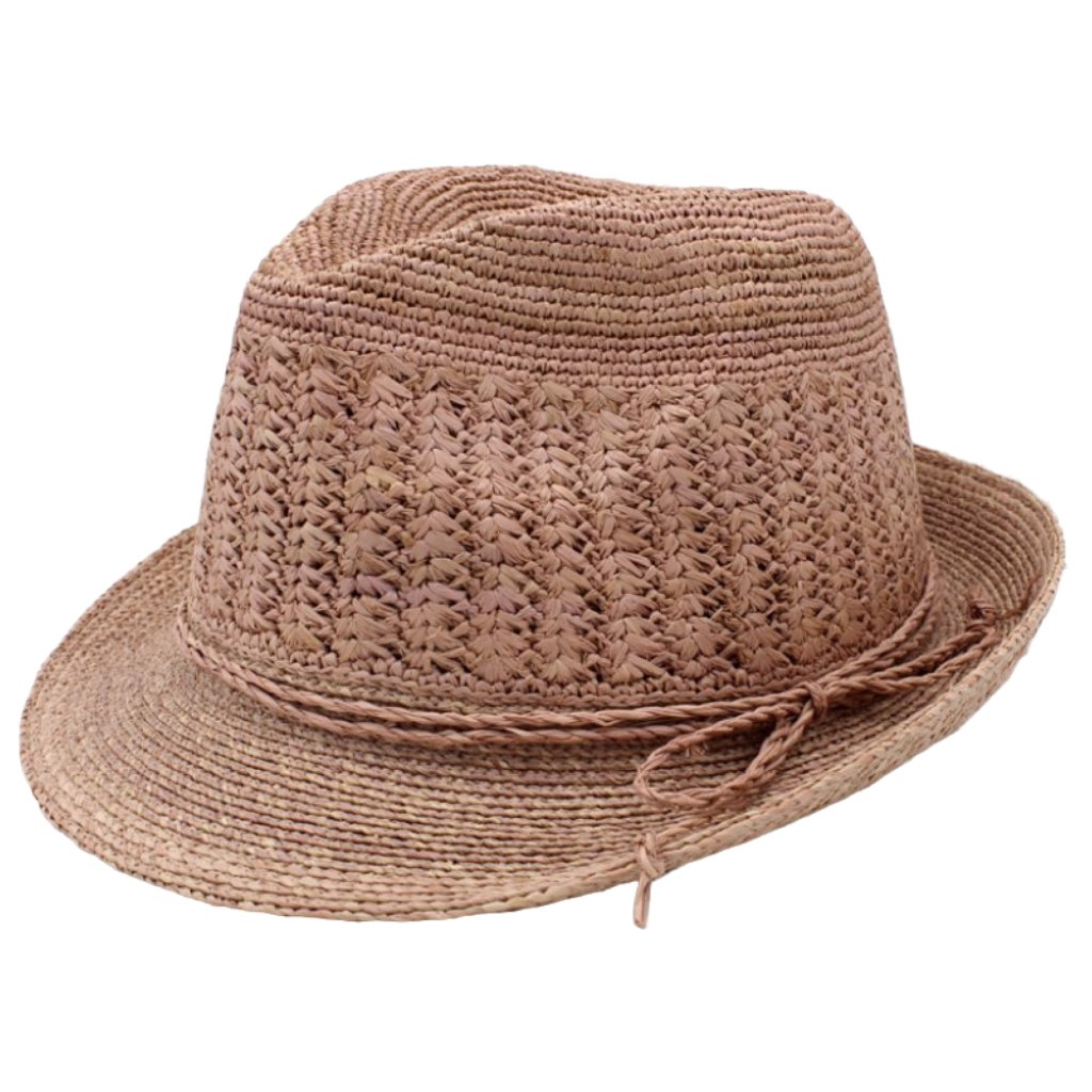 Trilby Raffia - slaměný klobouk crochet růžový