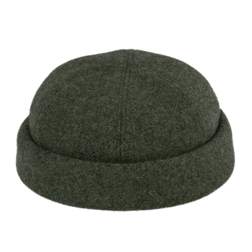 Vlněná olivová čepice Shetland melange - Docker cap - zimní vlněná čepice